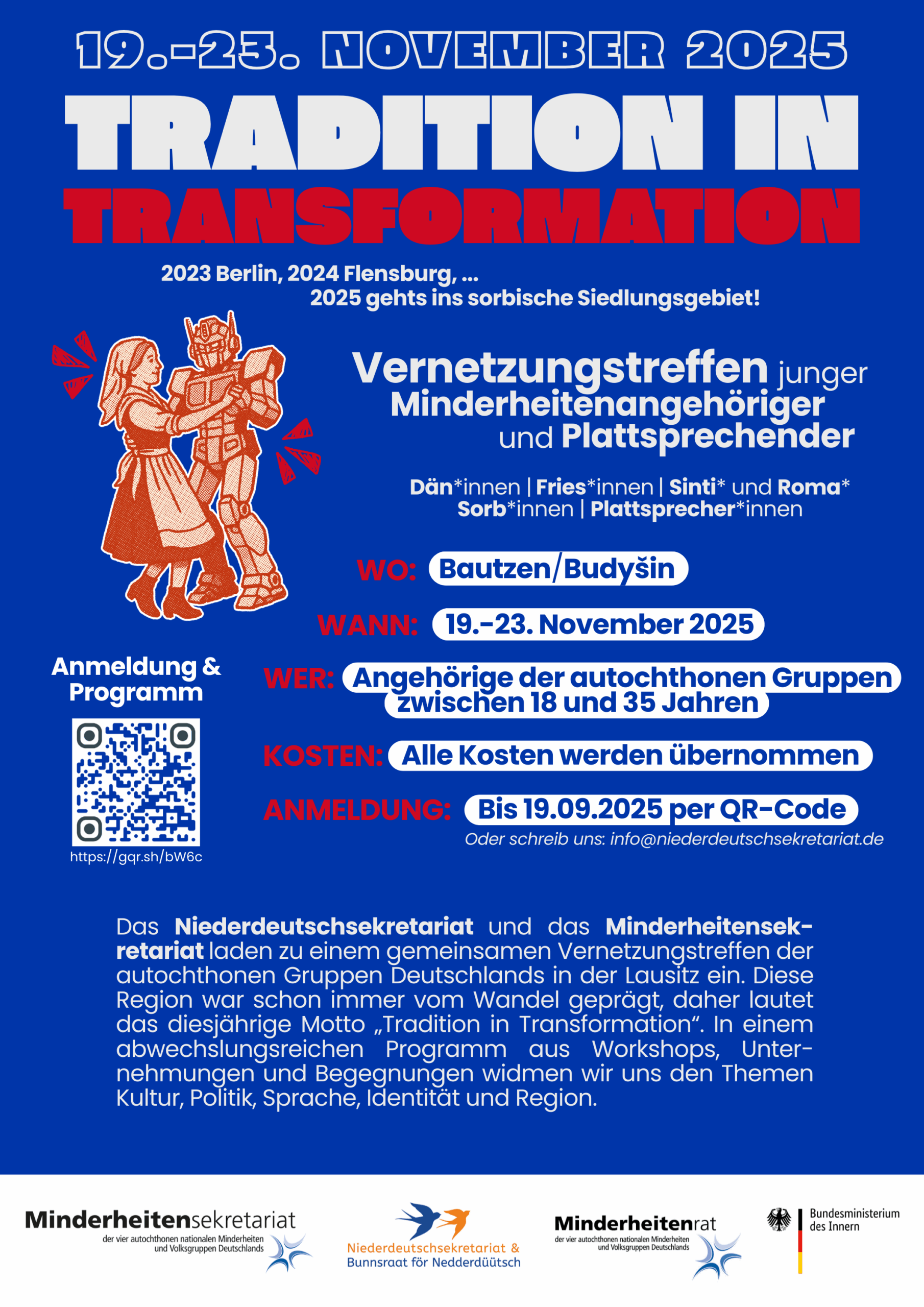MINDERHEITENSEKRETARIAT und Niederdeutschsekretariat laden ein zum Vernetzungstreffen junger Minderheitenangehöriger und Plattsprechender vom 19.-23.11. in Bautzen/Budyšin